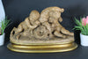 Gorgeous art deco terracotta Statue sculpturesigned by artist  sculpteur Calendi Romantic scene with faun /cherubs marked with number...