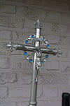 Antique Brass altar crucifix with coloured cabuchon stones 60 cm height and 25 cm wide 1,9 kg begin...