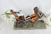 Gorgeous French statue of a roman / greek gladiator riding in chariot with horses on a marble stone...
