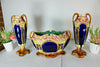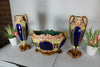 antique French mantel set vases with centerpiecemajolica barbotinecenterpiece 26.5 cm lenght and 16 cm height / side vases...