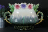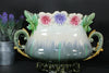 antique 1900s  majolica Planter / jardiniere with floral relief decors and special dragon handlesreal eye catcher because of...