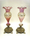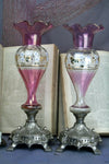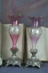 Gorgeous 1930 Bohemia Art hand made glass vases enameled etched floral decorationhand made work from Czechoslovakia36cm tall each...