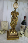 Wow A gorgeous vintage French table lampBrass With onyx The 3 Graces figurines with a gorgeous vintage shade...