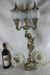 Gorgeous Table lamp france 1970 spelter bronze silver patinated with art nouveau lady holding 3 arms glass shades...