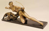 ART DECO sculpturechalkware hunting lady with bow and whippet dog marked with a numberon a wood baseseems to...