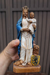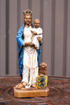 Vintage flemish ceramic statue of our lady of flanderswith lion, the symbol of flanders , next to her23,5...