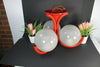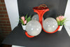 Mid century german KAISER leuchten marked pendant lamp chandeliermetal red lacquered and glass globes typical retro design from...