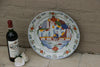 LARGE DUTCH DELFT pottery polychrome wall plate can be hanged mid 1800s Typical delft piece from that period...