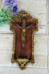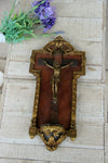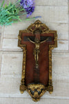 Gorgeous French bronze crucifix with Holy water font wood plaque with bronze ornaments / frame 31.5 cm height...