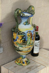 Antique italian majolica pottery vase With hand paint scenes front and backside special because of the satyr heads...