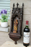 Rare french antique neo gothic wood carved chapel with a madonna insidewood carved polychrome madonna chapel is 51...