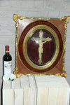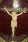 French religious crucifix behind globeFramed1950sChrist is made of wax or composite material 50 x 56 cm with frame...