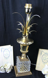 Vintage mid century table lampGlass cut base and brass pineapple / palm leavesstyle is attr to maison jansen...