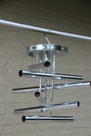 A mid century Chandelier pendant with chrome tubes 6 tubes and a bulbs can be placed on both...
