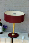 Mid-Century French Brass and Leather Table Lamp, 1950sleather burgundy red coloured and brass model attr Jacques Adnet (...