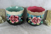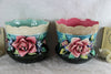 PAIR antique French Barbotine planters with majolica relief flowersmatching pair1900 marked with number21,5 cm diameter and 20 cm...