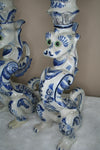 Very exclusive and rare to find delft candle holders Dutch 1930's pottery dragons / chimaera marked at bottom...