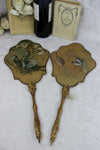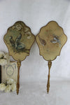 ANTIQUE PAIR face fireplace screensNapoleon III 19th c Francehand paint birds decor on silktop piecesa few tiny holes...
