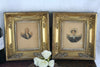 Old French PAIR antique drawings in a framemonogrammed ED 1834 portraits of a man and woman , with...