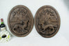 Very rare Pair BLACK FOREST wood oval panels With hunting scenes with dog / fox Germany begin 1900s...