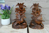 PAIR antique top pieces from A switzerland mansion typically black forest detailed wood carved statueswith partridge birds and...
