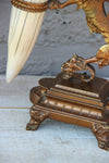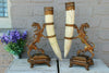 Top pieces from francegothic castle pair bronze Cornucopia horn statuewith heraldic lions holding the horns1 horn is a...