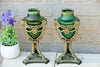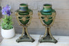 Stunning pair French Vases / urns art nouveau period spelter / brass with opalescent glassglass is bohemian czech...