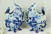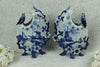 Very cute and gorgeous delft blue white pottery Vases / figurineswith relief floral decor and a bird sitting...