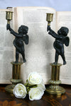 PAIR antique FRENCH bronze patinated Candle holdersPutti / cherubseach is 27cm tall good condition see detailed pics gorgeous...