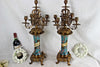 PAIR french antique candle holders spelter base with putti heads floral sevres porcelain 27.5 cm height each 1910/1920...