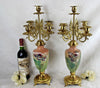 pair vintage cobalt blue limoges porcelain vaseswith romantic decorsbrass handles 36 cm height1960sgood condition,just small hairline back base...