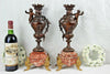 Antique pair of Urns France 1920'sspelter bronze coloured on a marble baseputti cherub figurines on each side42 cm...