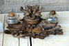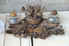 Antique Swiss or German wood carved black forest inkwellwith forest theme acorn wood elements and a birds couple...