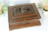 antique german black forest wood carved sewing box was used to put sewing equipment in it was personalised...