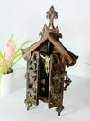 Antque BLACK FOREST WOOD CARVED CLOCKvery nice carving with hunting trophies like birds / fishon top a deer...