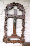 antique black forest wood carved religious chapel with inside a crucifix with mother of pearl nacre corpusvery beautiful...