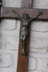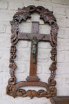 Antique black forest wood carved wall crucifix with metal christ corpusvery beautiful piecegood condition with some wear consistent...