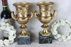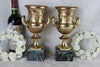 Pair vintage french urnsMEtal Gold gilt and on marble baseputti figurines27 cm height and 13 cm wide1970 ...