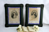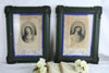 PAIR Very old 19th c French portraits in frame religiouswith latin texteach is 31.5cm wide and 41.5 cm...