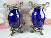 PAIR French faience Vases Blue faience colour with nice decoration39cm high each