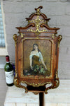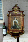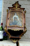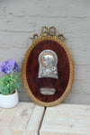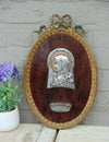 gorgeous religious antique holy water font for wall hanging on a wood plaque with a bronze frame with...