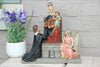 Rare religious chalkware statue Regina cordium depicting enthroned and crowned Madonna and child flanked by angel and a...