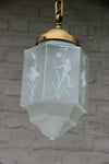 Gorgeous Art deco Skyscraper lantern lampwas hanging in entrance hall of a parisian houseglass with romantic decors on...