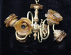 antique french parisian bronze chandelier lampwith 5 amber glass tulip shades , rare to find colour in these...