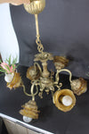 Vintage french bronze & amber glass shades chandeliervery nice lamp is for 6 e14 bulbs ( bulbs not...