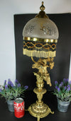 antique Bronze putti cherub table lampwith glass bowl on top 1950sneeds new wiring for the bulb real eye...