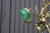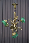 Gorgeous french bronze chandelierwith putti cherub figurine and floral decorgreen glass tulip shadesneeds new wiring55 cm height and...