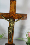Gorgeous antique French crucifixwood inlay decor and bronze signed christ 42.5 x 20 cmdated at back 1916 very...