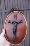 antique french religious wall plaque panel with crucifixbronze & woodmetal christ corpus27 x 17,5 cm begin XXth century...