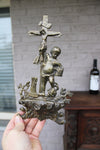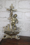 Antique bronze holy water font with crucifix very beautiful27 x 13,5 cm 1930/1950